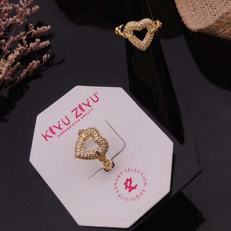 Add a touch of romance to your style with this golden stainless steel ring featuring a sparkling, diamond-studded open heart design. Anti-tarnish and waterproof, this lightweight ring is perfect for daily wear, parties, or gifting someone special. Pair it with western or ethnic outfits for a chic, elegant statement.