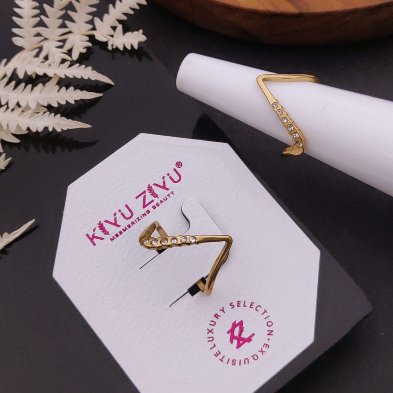 Turn heads with this uniquely designed Zigzag Ring in a radiant golden finish. Crafted from premium stainless steel with anti-tarnish properties, this ring features a sleek geometric shape adorned with shimmering diamond-like stones. It’s bold, modern, and perfect for elevating your everyday or party look. Comfortable to wear and built to last, it brings both luxury and edge to your jewelry collection.